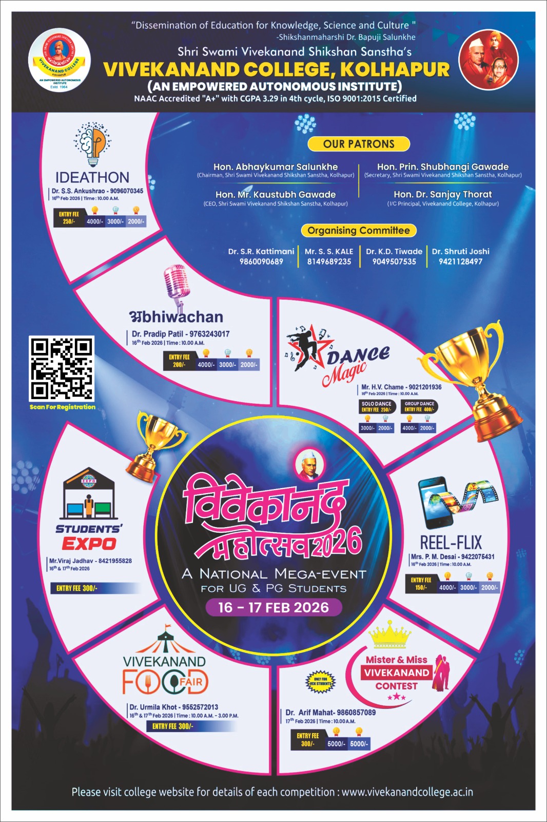 | "Vivekanand Mahostav - 2025 : Shodh Chaitanyacha " A National Mega Event for UG & PG students on 4th and 5th February 2025 ..Scan QR Code for registration and details |