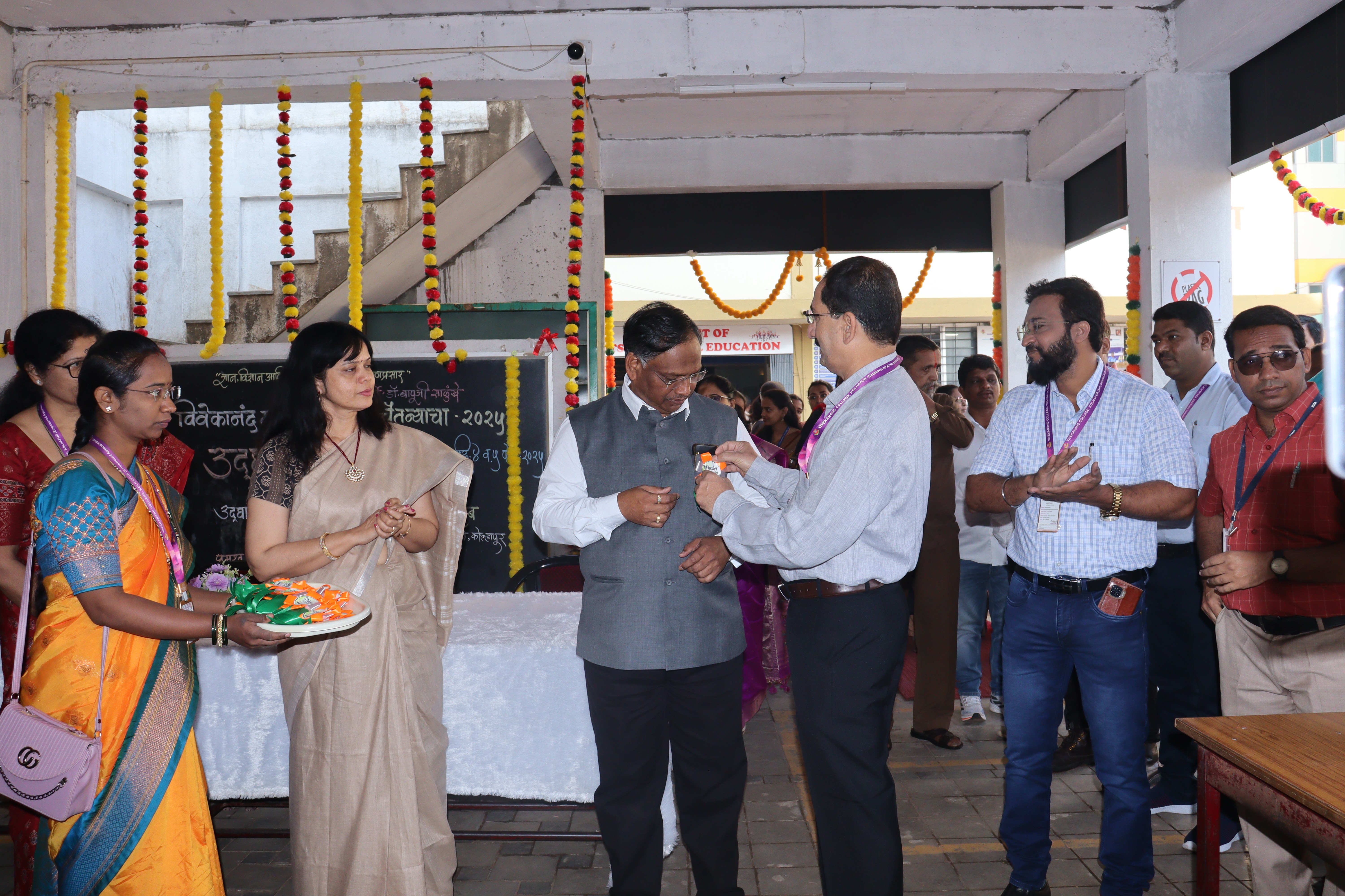 फूड फेअर कार्यक्रमाच्या उदघाटनामध्ये प्राचार्यांचे स्वागत